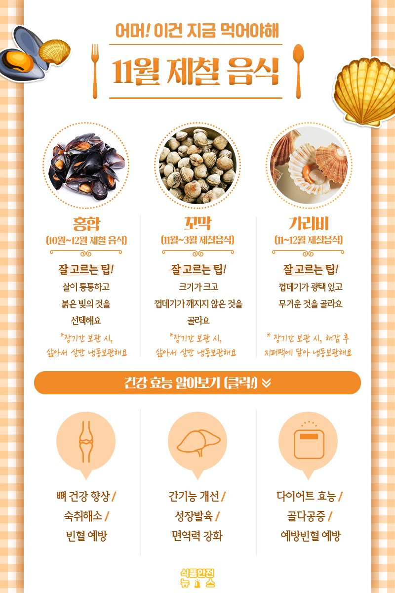 이렇게 11월 제철 음식 BEST 5를 소개해드렸어요. 제철 음식을 통해 건강한 가을을 만끽해보세요! 🍁